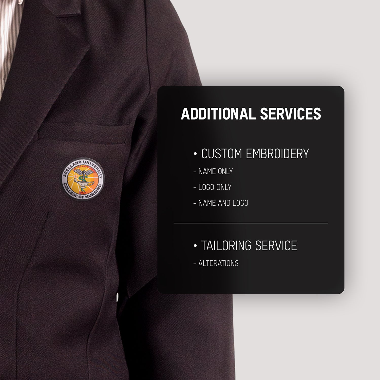 For EMBROIDERY, provide a CLEAR PICTURE of the logo (soft copy, unembroidered) and your COMPLETE NAME EMBROIDERY details before checkout.