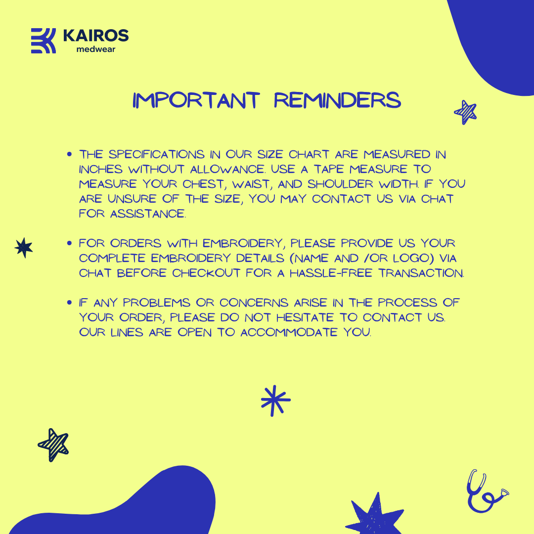 📏 This is a UNISEX/straight cut of Doctor’s Gown. Make sure to check your size accurately using a measuring tape. If unsure, message us for assistance. WE WILL NOT ENTERTAIN RETURNS DUE TO WRONG PLACING OF SIZE ON THE BUYER’S END unless there's a discrepancy from the size chart. Provide photo or video unboxing proof for verification.